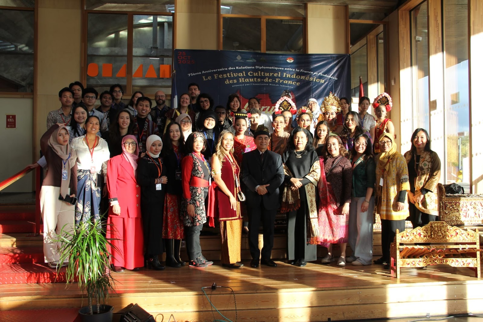 Saya tak bisa melihat pembukaan oleh ketua ARI dan ketua panitia. Ketinggalan peragaan busana daerah juga. Namun saya sempat menyaksikan pidato-pidato resmi oleh Duta Besar Indonesia untuk Prancis, Bapak Mohamad Oemar, senator Region Hauts-de-France, Bapak Joshua Hochart, dan perwakilan Mairie de Lille, Bapak Hakim Agouni.