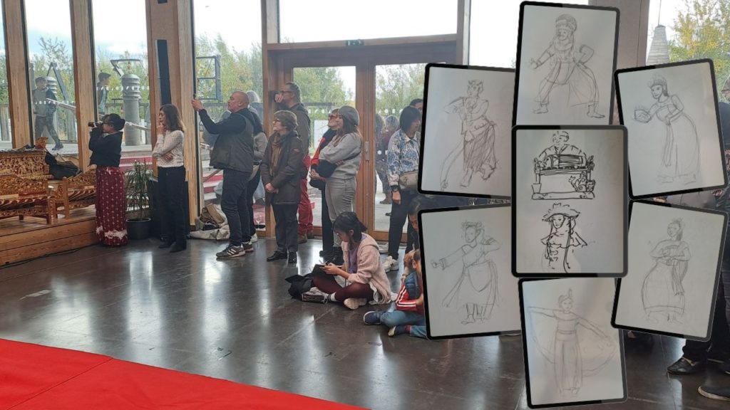 Butet yang sengaja tak mau mendaftar menjadi sukarelawan karena berniat mencari objek gambar pun puas! Dia berhasil membuat beberapa sketsa para penari dengan kostum berwarna-warni dan berbagai aksesoris yang cantik itu.