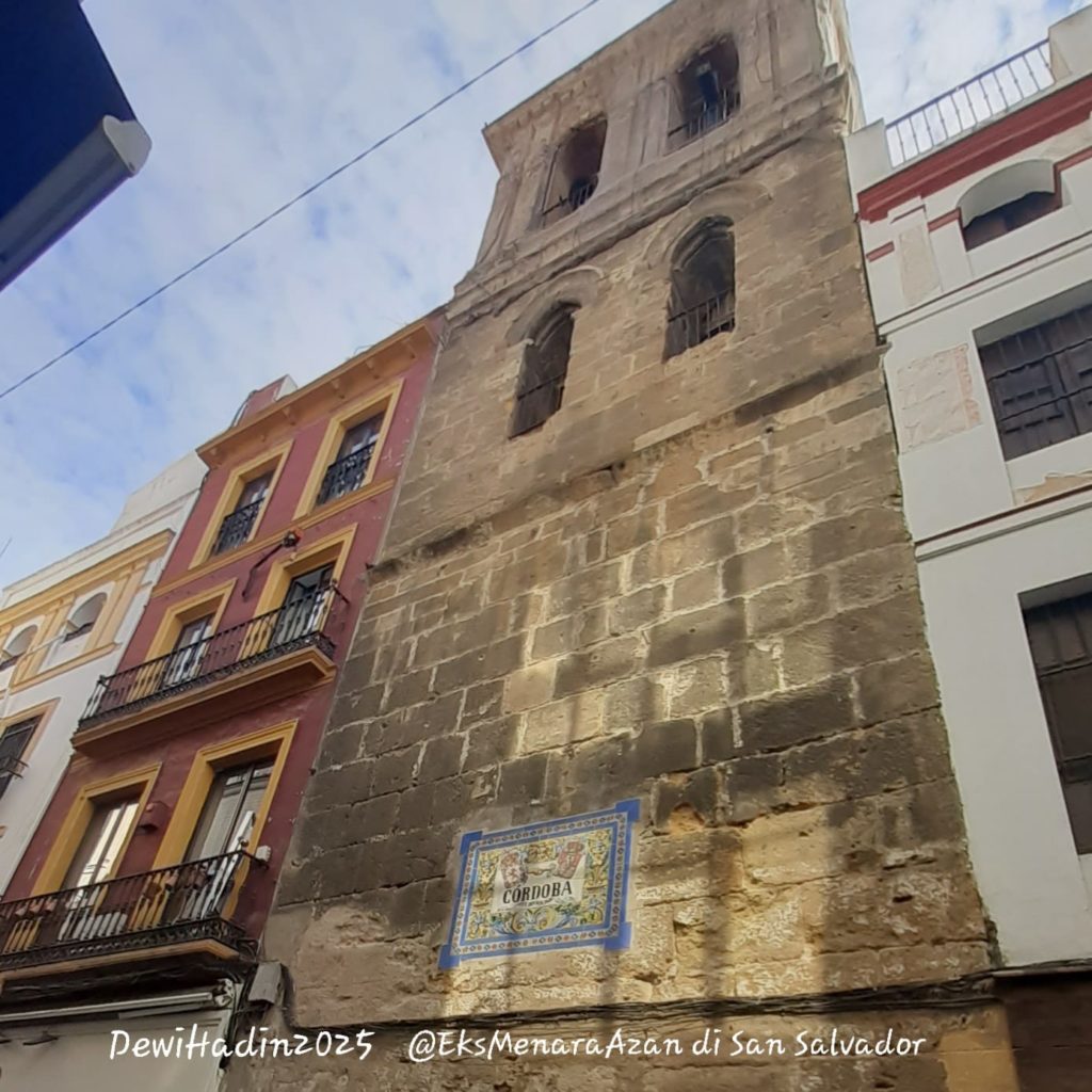 Keesokan harinya setelah sarapan, kami keluar pagi-pagi sekali. Matahari belum sepenuhnya naik. Sevilla di pagi hari bulan September terasa sejuk. Berbekal Google Maps, kami berjalan menuju Plaza San Salvador. Lapangan itu masih sepi dan di tengahnya ada sebuah gereja. Saya berjalan menuju gang kecil di samping Gereja El Salvador untuk melihat dinding sampingnya. Dinding yang hanya sepotong itu cukup tinggi. Di sana tertanam sebuah plakat berwarna biru bertuliskan nama jalan kecil tersebut: “Cordoba”. Ternyata itu adalah pintu samping menuju taman di dalam gereja. Agak lama saya terdiam di depan dinding itu, membayangkan ratusan tahun yang lalu, di abad ke-8. Dahulu dinding ini adalah dinding menara azan masjid pertama di Sevilla yang dibangun oleh pemimpin kota bernama Umar Ibn Adabbas atas perintah Abdurrahman II.