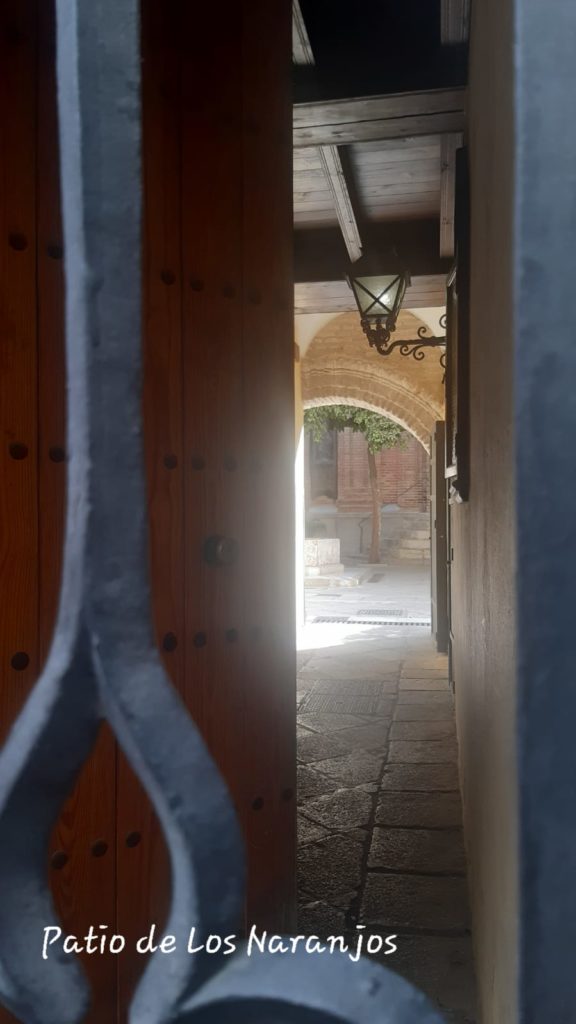 Dari balik jeruji pintu besi saya melihat sebuah patio (taman). Dahulu taman gereja itu adalah area berwudu, tempat orang melepas alas kaki mereka dan bersuci di air mancur di bawah naungan pohon-pohon jeruk yang rindang sebelum masuk ke masjid. Taman itu kini dikenal dengan nama Patio de los Naranjos del Salvador yang berarti “taman pohon jeruk Gereja El Salvador.” Sayang, hari itu kami tidak bisa masuk. Gereja El Salvador pada hari Minggu hanya buka siang hari.