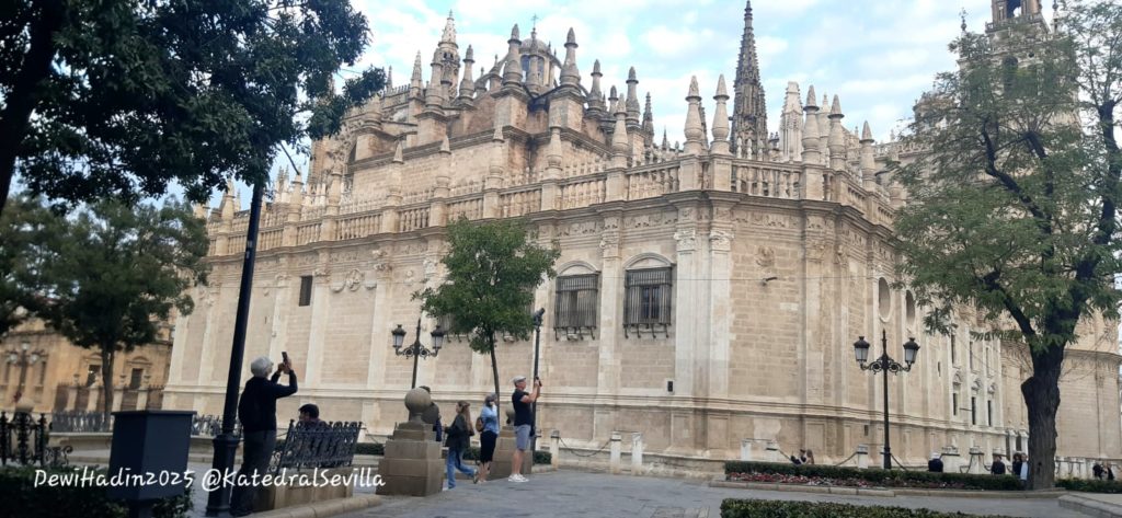 Kemudian kami melanjutkan berjalan menuju ke arah Catedral de Sevilla. Ketika sampai di pelataran katedral, awan yang menutupi langit perlahan memudar. Katedral itu sangat besar dan luas.