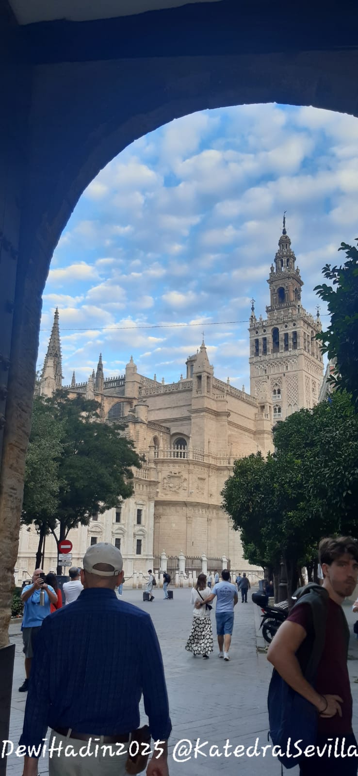 Kemudian kami melanjutkan berjalan menuju ke arah Catedral de Sevilla. Ketika sampai di pelataran katedral, awan yang menutupi langit perlahan memudar. Katedral itu sangat besar dan luas.