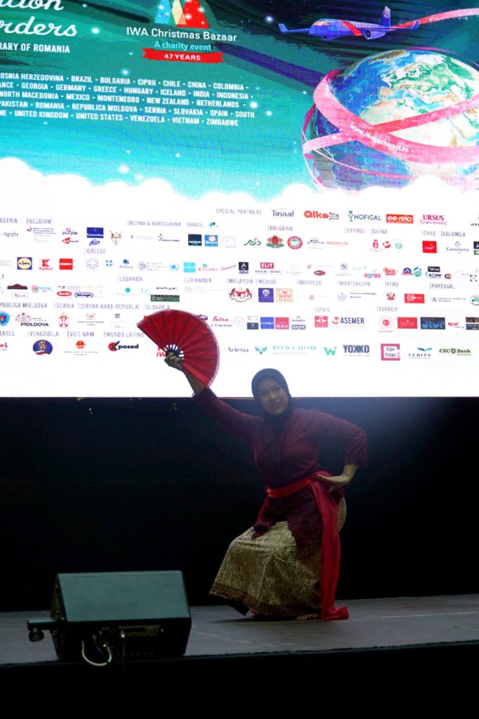 Tari Bajidor Kahot di panggung utama yang dipersembahkan oleh Jihan Hasna Jauza Apandi, mahasiswi Indonesia yang sedang studi aerospace engineering di National University of Science and Technology Politehnica Bucharest menambah kemeriahan suasana bazar. Dengan gerakan dinamis dan ekspresif, serta iringan musik yang enerjik dan ritmis, tarian tradisional asal Jawa Barat ini menarik perhatian pengunjung yang terlihat terpesona dan merespon dengan bertepuk tangan meriah dan mengabadikan momen melalui kamera telepon genggamnya.