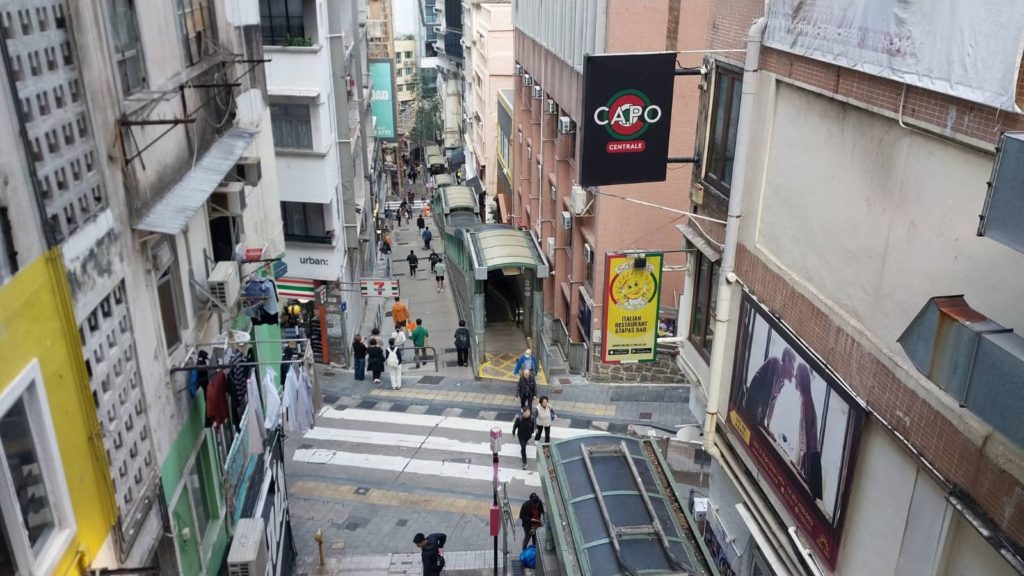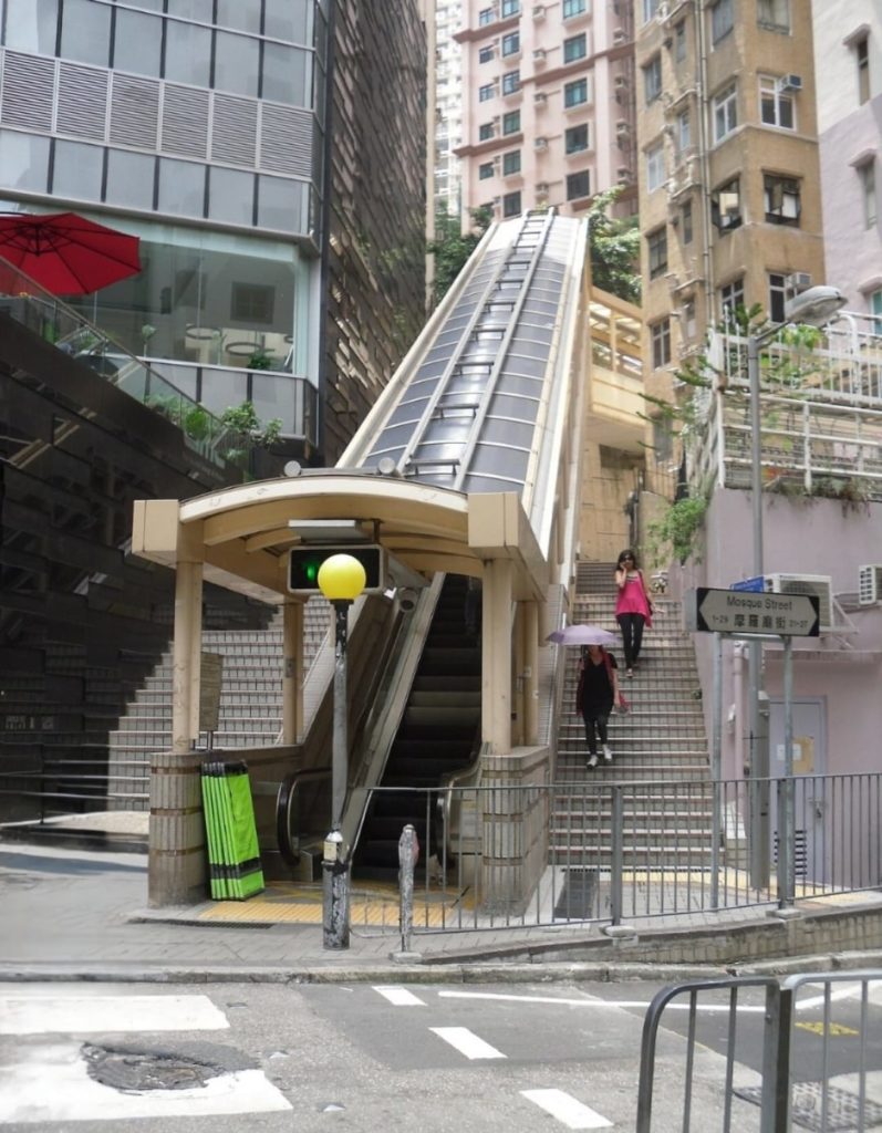 Sedikit mengupas tentang eskalator menuju Masjid. Sistem eskalator dan jalur pejalan kaki Central –Mid-Levels di Hong Kong merupakan sistem eskalator tertutup luar ruangan terpanjang di dunia.
