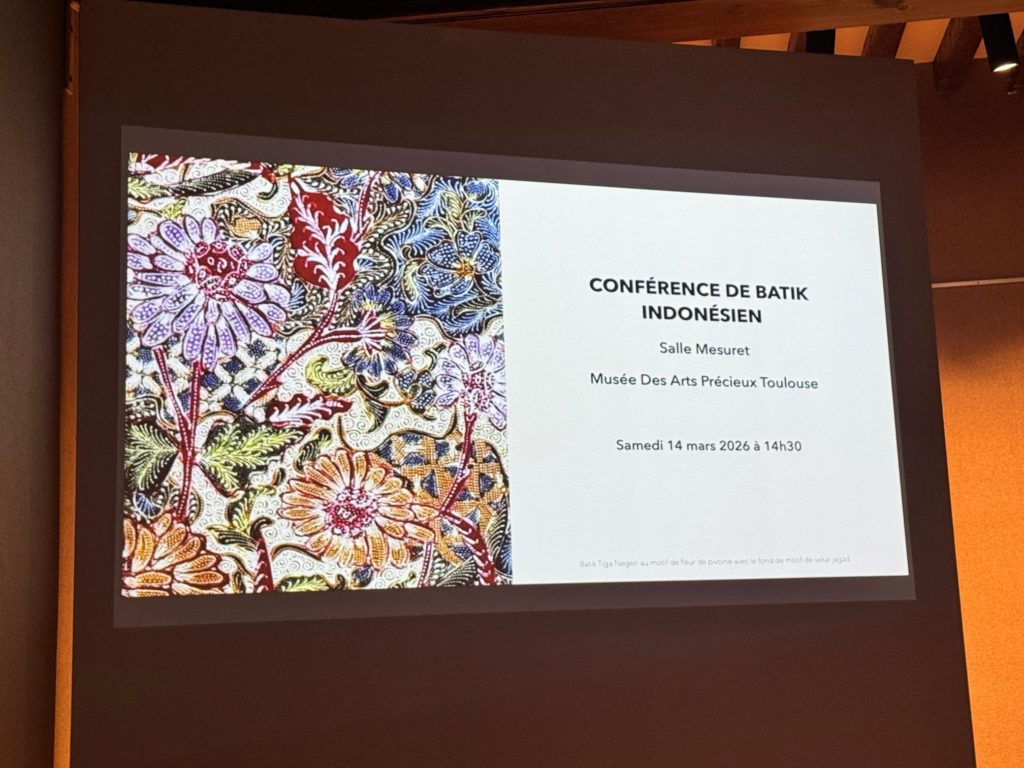 Toulouse, Prancis – Kirana Budaya mendapat undangan dari asosiasi budaya Les Amis du Musée Georges Labit di Toulouse untuk mengadakan konferensi bertema batik Indonesia. Kegiatan ini diselenggarakan pada 14 Maret 2025 bertempat di Musée des Arts Précieux Paul Dupuy, Toulouse.